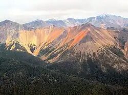 Tweedsmuir Park protects the entirety of the Rainbow Range, a collection of volcanic peaks where heavy mineralization has given the soil an array of colours. The park also protects Hunlen Falls, a 260 metre tall waterfall with one of highest unbroken drops in Canada.[7]