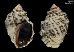 2. ^ Houart R. (2017). Description of eight new species and one new genus of Muricidae (Gastropoda) from the Indo-West Pacific. Novapex. 18(4): 81-103.