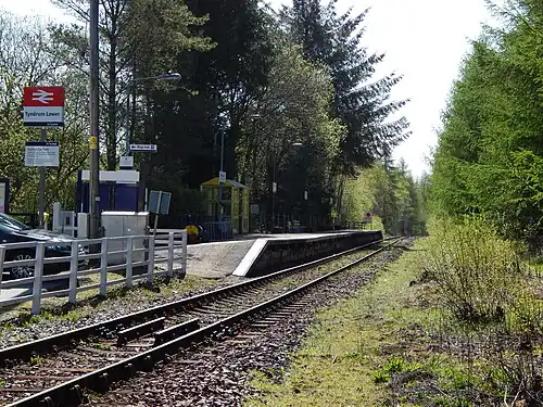 Tyndrum Lower railway station is one of two railway stations serving the small village of Tyndrum in Scotland, the other being Upper Tyndrum. This station is on the Oban branch of the West Highland Line, originally part of the Callander and Oban Railway. It is sited 34 miles 70 chains (56.1 km) from Callander via Glen Ogle, between Crianlarich and Dalmally.[3] ScotRail manage the station and operate all services.