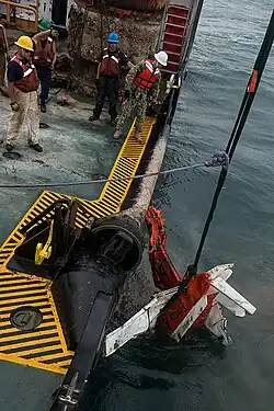 In November 2009, Harry Claiborne searched for a T-34C training aircraft on a flight from Naval Air Station Corpus Christi which crashed in the Gulf of Mexico.[19] The ship recovered the larger parts of the aircraft after its location was discovered by a Navy diving team.[20]