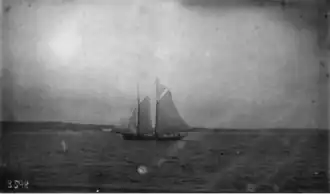 In the summer of 1904, Grampus collected egg-bearing lobsters in Maine, and in October and November 1904 she collected brood cod off Massachusetts. Laid up over the winter of 1904–1905, she reentered service on 1 April 1905 for another stint collecting egg-bearing lobsters.[94] By mid-1905, the Bureau of Fisheries was reporting to the United States Secretary of Commerce and Labor that after 19 years of active service, Grampus would soon be in need of major repairs and reconstruction to keep her seaworthy, and that the Bureau viewed it as highly desirable that auxiliary motor power be installed aboard her to supplement her sails.[94] In the summer of 1905, her usual duties of lobster collection were interrupted when she was tasked to transport Bureau of Fisheries representatives to Newfoundland to examine herring fisheries in its waters at the request of New England fishing interests and determine the effect on American herring-fishing vessels of fishing regulations recently passed by the colony's government.[95] Grampus took the opportunity to make observations related to mackerel in the region and to study local fishing and fish preservation practices in Newfoundland during the voyage.[96] The Bureau representatives found nothing irregular and that Newfoundland was enforcing fishing regulations in accordance with the Treaty of 1818,[96] but in mid-1906 the Bureau again reported to the Secretary of Commerce and Labor that the voyage demonstrated both the need for repairs to and reconstruction of Grampus and the installation of motor power aboard her if she was to remain an effective part of the Bureau′s fleet.[97]