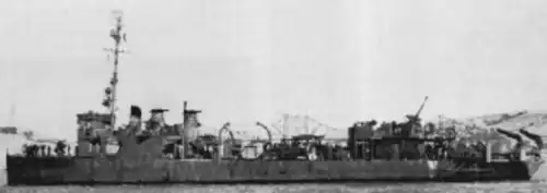 At Iwo Jima from 16 to 28 February, she gave her experienced aid in sweeping, patrolling, and screening for the buildup and the subsequent assault.[2] Though there was damage to many vessels and smaller sweepers from shore batteries, damage to destroyer minesweepers at Iwo did not occur, as screening battleships and destroyers stayed closer to the sweepers, and the beach areas swept were smaller than those in the Philippine Island chain. As Samuel Morison noted, "Bombardment ships were in position off Iwo by 7:00. Minesweeping began promptly".[10] Though many American vessels were damaged at Iwo Jima, it was placed first before Okinawa and was expected to be a less costly battle. This proved to be the case, particularly for the Navy's Destroyer/Minesweepers.[10]