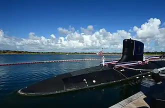 USS Indiana (SSN-789) is a nuclear powered United States Navy Virginia-class attack submarine, named for the State of Indiana. She is the sixteenth of her class and sixth of the significantly redesigned Block III, including a revised bow and VLS technology from the Ohio-class of guided missile submarines.[12] Indiana was constructed by Huntington Ingalls Industries in partnership with the Electric Boat division of General Dynamics in Newport News, Virginia, with the initial contract awarded on 22 December 2008. Her keel was laid on 16 May 2015[1] and she was launched on 9 June 2017.[2] The boat was christened on 29 April 2017 and sponsored by Diane Donald, wife of Admiral Kirkland H. Donald, USN (ret).[3] She was commissioned on 29 September 2018 at Port Canaveral, Florida. In 2024, USS Indiana participated in Operation Ice Camp. In 2025, USS Indiana conducted a homeport shift from Groton, CT to Pearl Harbor, HI. [6][13]
