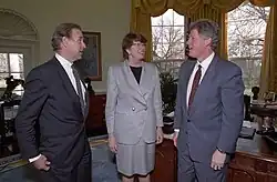 As chair, Biden contributed to successfully encouraging the Clinton administration to commit the resources and political capital to broker what became the 1998 Good Friday Agreement between the governments of Ireland and the United Kingdom through the Northern Ireland peace process.[104]