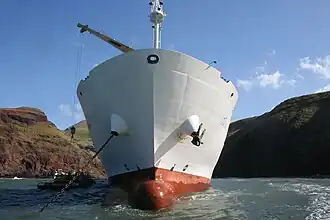 Ua Huka is supplied with goods not produced on the island by a cargo and passenger ship that arrives regularly from Tahiti. The Aranui 5 calls at Ua Huka once a month. This is also the best way for tourists to reach the island. The ship cannot dock at Vaipae'e's small pier, so it has to be loaded and unloaded by boats.