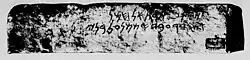 The Umm Al-Amad votive inscription is an ex-voto Phoenician inscription of two lines. Discovered during Ernest Renan's Mission de Phénicie in 1860–61, it was the second-longest of the three inscriptions found at Umm al-Amad. All three inscriptions were found on the north side of the hill.[1]