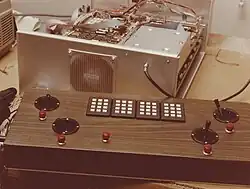 The system supported four plug-in joysticks and a port on the back that could connect to an extender product using proprietary signaling over an RS-232 physical interfaces. The extender product, and ROM cartridge that turned VideoBrain into a timeshare terminal, were sold in very small quantities. Other connections on the back panel were to the television display and to the external AC transformer. A switch on the back panel directed the TV signal to channel 3 or channel 4.[11]