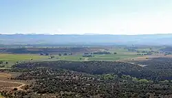 The Uncompahgre Valley is an agricultural valley of the Uncompahgre River around the town of Montrose in the western part of the U.S. state of Colorado. The valley is bounded to the south and east by the San Juan Mountains and to the west by the Uncompahgre Plateau. The valley contains about 135,000 acres of irrigable land, is 35 miles long, and approximately 12 miles wide.[1]