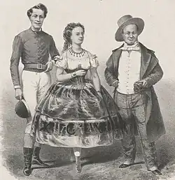 Pierre Mesmacre, Lise Tautin and Désiré in costumes of Une demoiselle en loterie
