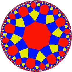 In geometry, a symmetry mutation is a mapping of fundamental domains between two symmetry groups.[1] They are compactly expressed in orbifold notation. These mutations can occur from spherical tilings to Euclidean tilings to hyperbolic tilings. Hyperbolic tilings can also be divided between compact, paracompact and divergent cases.