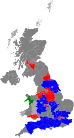 There were also 687 independent councillors and 4 Mebyon Kernow councillors. The remaining 217 seats were held by residents' associations and minor parties.[19] A by-election for the parliamentary constituency of Manchester Gorton (caused by the death of Sir Gerald Kaufman, the sitting MP) was due to be held on the same day as the local election, but the by-election was cancelled after the general election was called for the following month.[17]