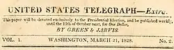 Masthead of the United States Telegraph Extra, March 21, 1828