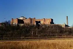 The original USDB was Fort Leavenworth's biggest and tallest building sited at the corner of McPherson Avenue and Scott Avenue on bluffs above the Missouri River (39°21′36.50″N 94°55′0.53″W / 39.3601389°N 94.9168139°W / 39.3601389; -94.9168139 (Location of the original USDBP, Fort Leavenworth)). The old domed building was nicknamed "Little Top" in contrast to the domed federal prison 2+12 miles (4.0 km) south which was nicknamed the "Big Top".[6]
