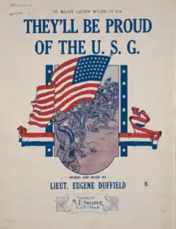 To the Delaware-posted 12th Battalion, United States Guards – and its commanding officer Major Lucien Wiler – was dedicated an unofficial march composed by Lt. Eugene Duffield, "They'll be Proud of the U.S.G."[10]