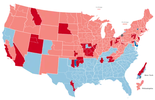 1920 presidential election results. Red denotes states won by Harding, blue denotes states won by Cox. Numbers indicate the electoral votes won by each candidate.