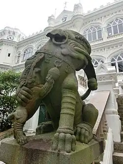 Positioned at the main entrance stairs, there are three Davids Deers, two adults, and one child. Students touching the deers before their graduation risk being cursed to never graduate. To get rid of this spell, students must touch the rock lions located at another entrance.