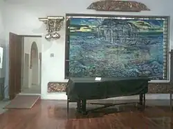 Many spaces in the complex are suited to showcase exhibitions of art and culture.[2] The University houses the Museo de la Indumentaria Mexicana "Luis Márquez Romay" (The Luis Márquez Romay Museum of Mexican Attire) .[9] It displays an important collection of traditional Mexican attires, many of which were donated by Carmen Romano, who was First Lady of Mexico from 1976 to 1982.[2] The Museum also hosts temporary exhibits such as the art exhibit "Ocho conjuros para sanar el alma" (Eight spells to heal the soul) as part of the 25th annual Festival de Mexico in the historic center of Mexico City.[9] In 2007, there was an exhibition called "Monjas coronadas" (Crowned Nuns) which displayed artifacts related to the ritual of "marrying God" when nuns take their vows. It included the crowns which were placed on the nun's head, some quite large, during the colonial period.[3] Concerts and art exhibits are showcased in the Former Church of San Jerónimo as well.[2] One of these exhibits was that of a large touring sculpture called "Traición" (Betrayal) .[10] The school also has a collection of musical instruments including four antique pianos, donated and currently used for concerts.[2]