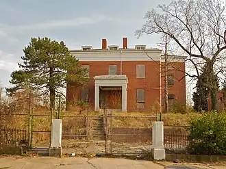 Upton, also known as the David Stewart Residence or Dammann Mansion, is a historic home located in the Upton neighborhood of Baltimore, Maryland, United States. It is a large brick Greek Revival mansion constructed about 1838 as the country residence of David Stewart (1800-1858), a prominent Baltimore attorney and politician. It is 2+12 stories high on a raised basement, three bays wide and two rooms deep, with a center-passage plan. In the late 1950s, a brick stair tower was constructed when the building was adapted for public school use.[2] After many years as a school for exceptional children, in 1977 the Upton Mansion housed the offices for the Home and Hospital Services (school #303) of the Baltimore City Public Schools and continued through 2006.[3] In February 2023, a $2.2 million federal grant was announced to help create renovate the property into the headquarters of the Afro-American, an African-American newspaper published in Baltimore since 1892. Afro Charities is the awardee of the grant which will also help to digitize thousands of images and copies of the newspaper.[4]