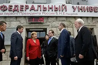 Ural Federal University, named after the first President of Russia, Boris Yeltsin, (Уральский федеральный университет имени первого Президента России Б.Н. Ельцина, Uralʹskiĭ federalʹnyĭ universitet imeni pervogo Prezidenta Rossii B.N. Yelʹtsina, often shortened to UrFU, УрФУ) is an educational institution in the Ural region of Russia. The Ural Federal University was formed by a merger of the Ural State Technical University and Ural State University. It is one of 10 Russian Federal Universities. The university cooperates with the Russian Academy of Sciences and serves as a research and innovation center for the Ural region. UrFU offers educational programs in four areas of knowledge and 108 academic majors.[12] UrFU also has the right to independently award academic degrees.