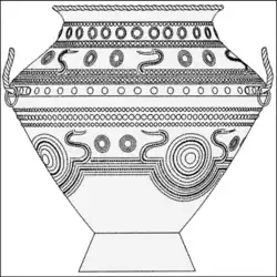 The Urnfield culture (c. 1300–750 BC) was a late Bronze Age culture of Central Europe, often divided into several local cultures within a broader Urnfield tradition. The name comes from the custom of cremating the dead and placing their ashes in urns, which were then buried in fields. The first usage of the name occurred in publications over grave sites in southern Germany in the late 19th century.[1][2] Over much of Europe, the Urnfield culture followed the Tumulus culture and was succeeded by the Hallstatt culture.[3] Some linguists and archaeologists have associated this culture with a pre-Celtic language or Proto-Celtic language family.[4][5] By the end of the 2nd millennium BC, the Urnfield Tradition had spread through Italy, northwestern Europe, and as far west as the Pyrenees. It is at this time that fortified hilltop settlements and sheet‐bronze metalworking also spread widely across Europe, leading some authorities to equate these changes with the expansion of the Celts. These links are no longer accepted.[6][7][8]