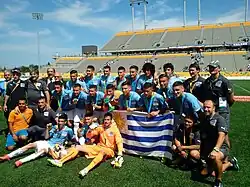 | Uruguay national football team Guillermo de Amores Sebastián Gorga Federico Ricca Mauricio Lemos Andrés Schettino Fabricio Formiliano Facundo Ismael Castro Juan Cruz Mascia Junior Arias Michael Santos Ignacio González Gastón Olveira Erick Cabaco Gastón Faber Fernando Gorriarán Nicolás Albarracín Mathías Suárez Brian Lozano |