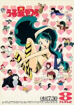 ![]() Promotional Fuji TV poster that features the main characters, with Lum, Ataru Moroboshi, and Ten in a lead | |