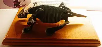 In 1957, paleontologist Alan J. Charig described many more fossils from the upper bone beds in his Ph.D. thesis for the University of Cambridge.[4][5] Subsequently, Stockley's units were renamed, Charig (1963) calling unit K6 the Kawinga Formation, K7 the Kingori Sandstones, and K8 the Manda Formation. Fossils were identified in many strata, invalidating Stockley's division into two distinct bone beds. Since Charig's description, the Kawinga Formation has been renamed the Usili Formation, the Kingori Sandstones have become the Kingori Sandstone Member of the Manda Formation, and Charig's original Manda Formation has become a subunit of the formation called the Lifua Member.[3] Six formations and one informal unit are currently recognized in the Songea Group (Ruhuhu basin) rocks range in age from Pennsylvanian to Anisian, including the Idusi (K1), Mchuchuma (K2), Mbuyura (K3), Mhukuru (K4), Ruhuhu (K5), and Usili (K6) formations and the informal Manda Beds, which include the Kingori Sandstone (K7) and Lifua Member (K8).[6]