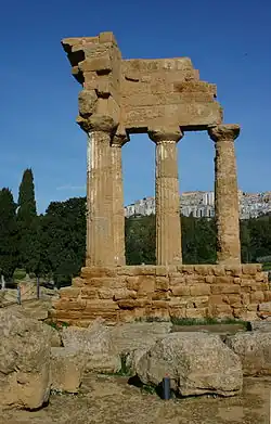 - Temple of Castor and Pollux. Despite its remains including only four columns, it is now the symbol of modern Agrigento.