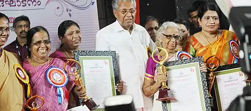 Pinarayi Vijayan, the Chief Minister of Kerala with recipients of Vanitha ratnam award 2017