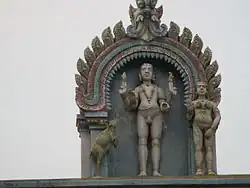 The legend of Bhikshatana is built in a stucco image in the temple