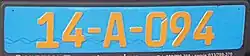 - Diplomatic plates had a blue background and yellow font. Unlike previous series, the first group of numbers contained only two digits, and the only letters that could be used were A, C, M and E (e.g. 00-A-000).