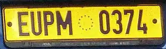 - EUPM plates used a yellow background and the prefix "EUPM" followed by numbers.