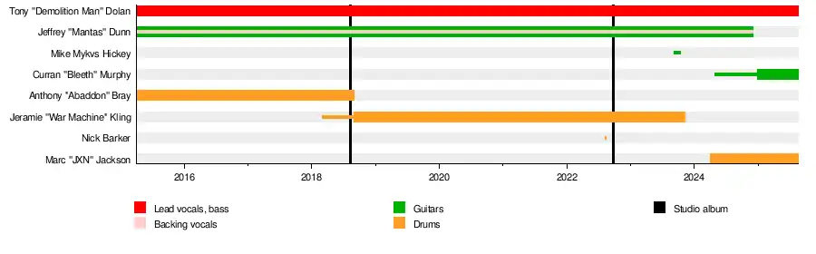• Tony "Demolition Man" Dolan – bass, lead vocals (2015–present)