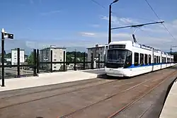The city's tram lines are supported by 6 trolleybus lines (31, 32, 33, 46, 72, 83; line 34 was subsumed into line 31 in 2017),[13] with a total route length of 54.0 km (33.6 mi). As with the city's tram lines, most of the trolleybus lines run from suburb to suburb, although their penetration of the city centre is less complete than the trams. Like the tram network, the trolleybus network is electrified using overhead line at 600 V DC, and shares a common electrical supply infrastructure.[14]