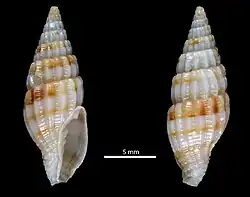Vexillum hilare is a species of small sea snail, marine gastropod mollusk in the family Costellariidae, the ribbed miters.[1]