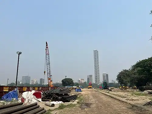 On 10 July 2025, a significant milestone was achieved in this project as the assembled TBM–S1410 (Durga) started digging up the tunnel near Khidirpur metro station, inside the premises of St Thomas School. This digging work will continue till Park Street metro station via Victoria metro station, after which the remaining section will be done using cut-and-cover method.[2]
