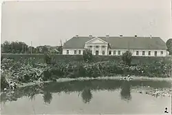 During the interwar period, a rail line was constructed running through nearby Marijampolė, which caused that town to become the regional centre, replacing Vilkaviškis in its traditional role.[4] In 1926, the Roman Catholic Diocese of Vilkaviškis was established and its curia was located in the Vilkaviškis Manor.[12] Since 1926, the Vilkaviškis Priest Seminary was operating in the city.[13]