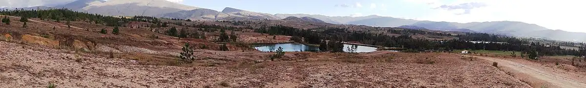 Near Villa de Leyva are several other sites of interest. The valley in which the town is located is rich in fossils from the Paja Formation (Cretaceous period), the most famous being a near-complete Monquirasaurus discovered in 1977 about 3 miles (4.8 km) west of Villa de Leyva. Known simply as El Fósil, the fossil was left in situ where it was discovered and a museum was built around it: another smaller Monquirasaurus fossil was discovered nearby and brought to the museum to be displayed alongside the larger specimen.[3] In the same formation the fossil ichthyosaurs Platypterygius sachicarum and Muiscasaurus catheti and the brachiosaur Padillasaurus leivaensis and pliosaur Brachauchenius, later reclassified as Stenorhynchosaurus, have been discovered.[7][8][9][10]