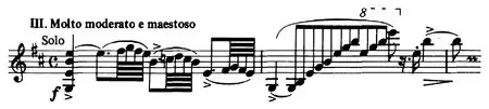 Even though the third violin concerto seems to impose fewer technical demands on the soloist than its predecessors, its melodic invention and impressionistic subtlety present significant interpretive challenges. This stress is most notable in the second movement and the chorale of the finale, which is reminiscent of the conclusion of the Fourth Piano Concerto.[2] Possibly because of this, the Third Concerto along with the Introduction and Rondo Capriccioso, Op. 28, and the Havanaise, Op. 83 have endured as the major concertante works for violin by Saint-Saëns still heard regularly today.[3]