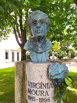 In 1999, a bust of Virgínia Moura, by the sculptor Manuel Dias, was inaugurated. The sculpture was placed in front of the building where the political police were based when she was arrested for the first time and was unveiled 50 years after that first arrest.