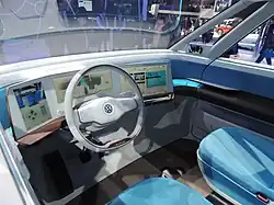 The BUDD-e was first shown at the 2016 Consumer Electronics Show;[2] Volkswagen stated that it would be released around 2020, though this appears to have been put back to 2023.[5][6] The BUDD-e was intended to feature touch, voice, and gesture control, as well as digital displays called E-Mirrors instead of the usual side mirrors.[7]