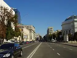 Volodymyrska Street (Ukrainian: вулиця Володимирська, romanizedvulytsia Volodymyrska) is a street in the center of Kyiv, the capital of Ukraine, which is named after the prince of Kievan Rus' Vladimir the Great. It is one of the oldest streets in the city, and arguably among the oldest constantly inhabited residential street in Europe. There are many educational, culture and government institutions, as well as historical monuments, on this street. Four buildings from Volodymyrska Street are depicted on reverses of Ukrainian hryvnia banknotes (Saint Sophia's Cathedral on 2 hryvnias, Tsentralna Rada building on 50 hryvnias, Red University Building on 100 hryvnias and building of the Presidium of the National Academy of Sciences of Ukraine on 1000 hryvnias).