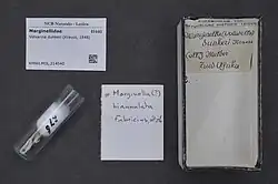 Shell of Volvarina dunkeri (specimen at Naturalis Biodiversity Center)