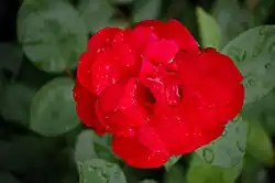 During the Second World War Wilhelm Kordes II crossed the East Asian Rosa wichurana with the Japanese Rosa rugosa eventually to obtain a new species, Rosa kordesii, able to withstand the harsh winters of north Germany. From it he later bred such famous post-war varieties as 'Parkdirektor Riggers,' 'Leverkusen,' Hamburger Phönix' and 'Heidelberg.' "The dark, glossy foliage of many modern roses can be traced back to 'Kordesii'."[1]
