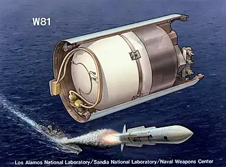 The W81 was a planned American warhead to be mounted on the SM-2 surface-to-air missile used by the United States Navy. The W81 was believed to be derived from the B61 nuclear bomb which forms the backbone of the current US nuclear gravity bomb arsenal and from which the W80 cruise missile warhead is derived. The weapon was being designed at Los Alamos National Laboratory (at the time called Los Alamos Scientific Laboratory).[1]