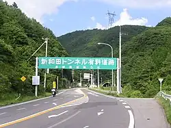 Shin Wada Tunnel the distant of which is 14,777 m that has belonged to the Shin-Wada Tunnel Toll Road since 1978. Since 1 April 2022, a driver is able to pass through the former toll road without toll tickets,[5] so the road which runs over this tunnel has been gone free to pass though since 1 April 2022.[6][7]