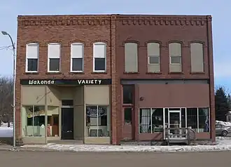 Wakonda Variety is a historic commercial building at 125 Ohio Street on Wakonda, South Dakota. It was listed on the National Register of Historic Places in 2002 as Building at 125 Ohio St.[1] Its nomination form cited the Wakonda Variety building as a "well-preserved example of the Commercial style in a rural town setting where very few historic buildings are left."[2]: 9