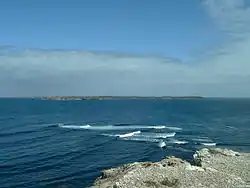 Waldegrave Island is a flat topped island with steep sides having a length of about 3.5 kilometres (2.2 miles) (in the east-west direction), a maximum height in the range of 37–39 metres (121–128 feet) and an area of 292 hectares (720 acres). Its east coast which is about 1.5 kilometres (0.93 miles) long is terminated at the north east with a point named McLachlan Point and the south by a point named Point Watson. It overlaps the seaward boundary of Anxious Bay as proclaimed by the Australian government in 1987 and again in 2006 under the Seas and Submerged Lands Act 1973.[1][4][5][6][7]