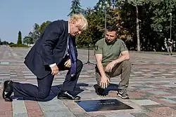 “We will thank not only in words, but also historically. Therefore, the name of Prime Minister of Great Britain Boris Johnson will appear on this Walk of the Brave today,” he said.[5]