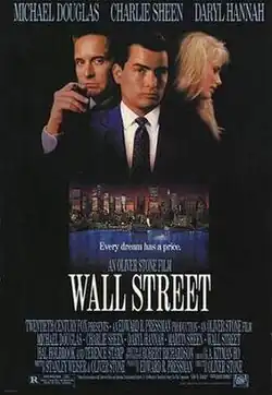 Wall Street is a 1987 American crime drama film directed and co-written by Oliver Stone, which stars Michael Douglas, Charlie Sheen, Daryl Hannah, and Martin Sheen. The film tells the story of Bud Fox (C. Sheen), a young stockbroker who becomes involved with Gordon Gekko (Douglas), a wealthy, unscrupulous corporate raider.